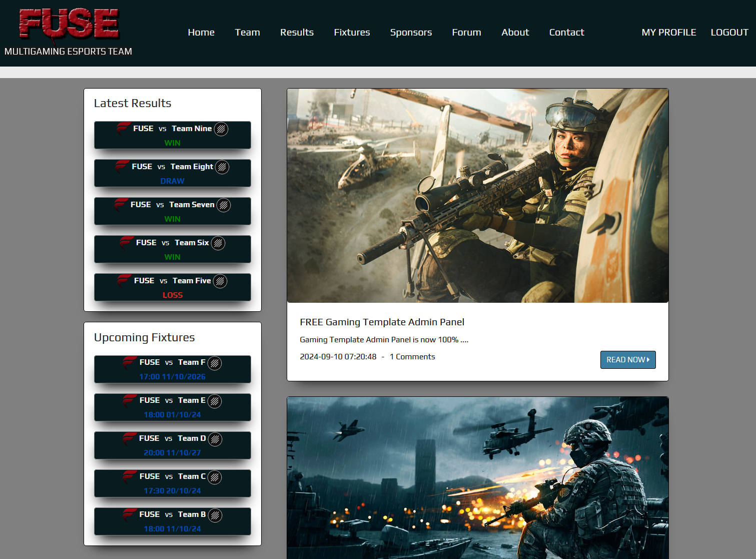 Gaming Template Admin Panel is an Admin Panel for Clan Templates Found at Desktop Code.