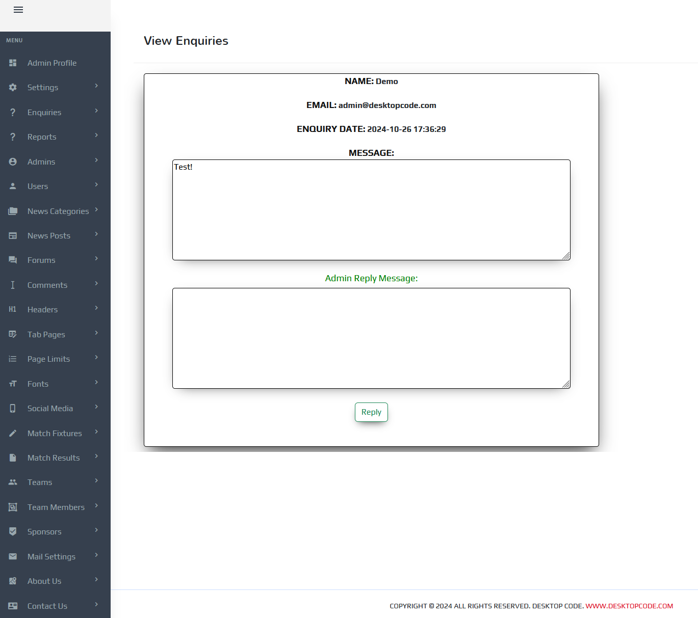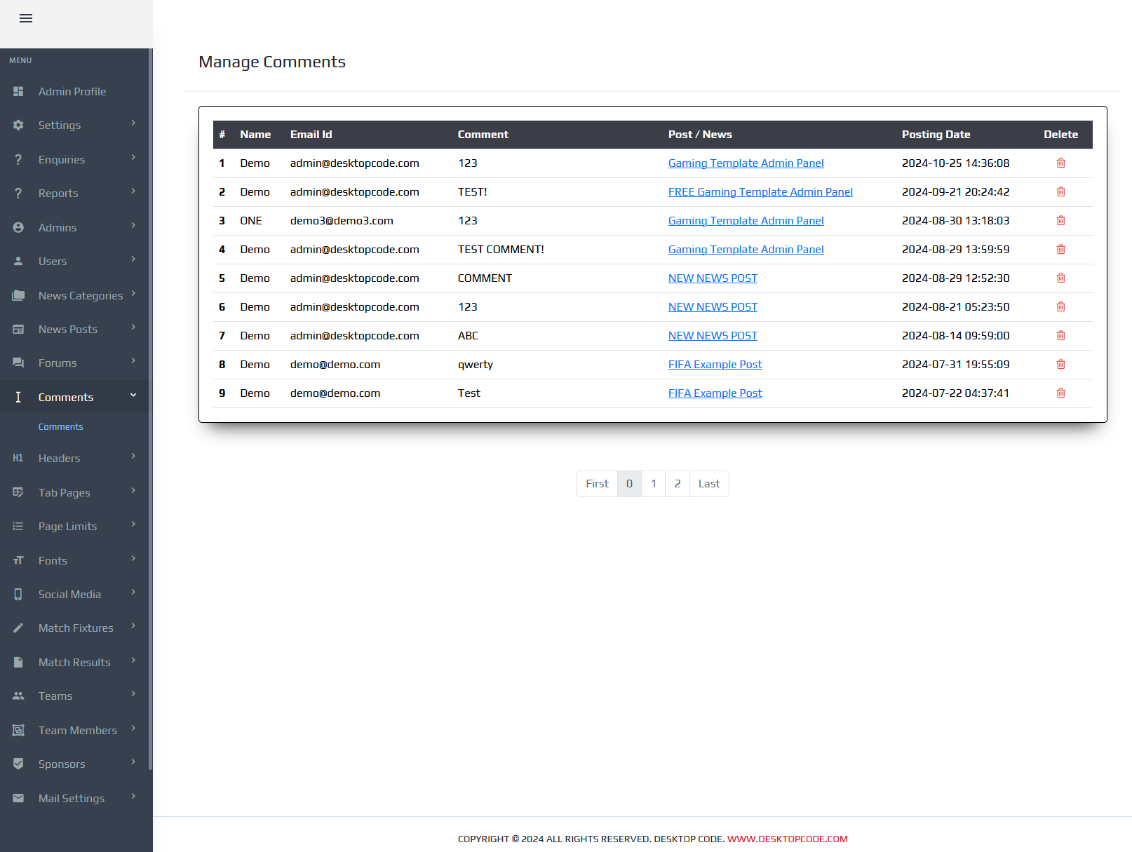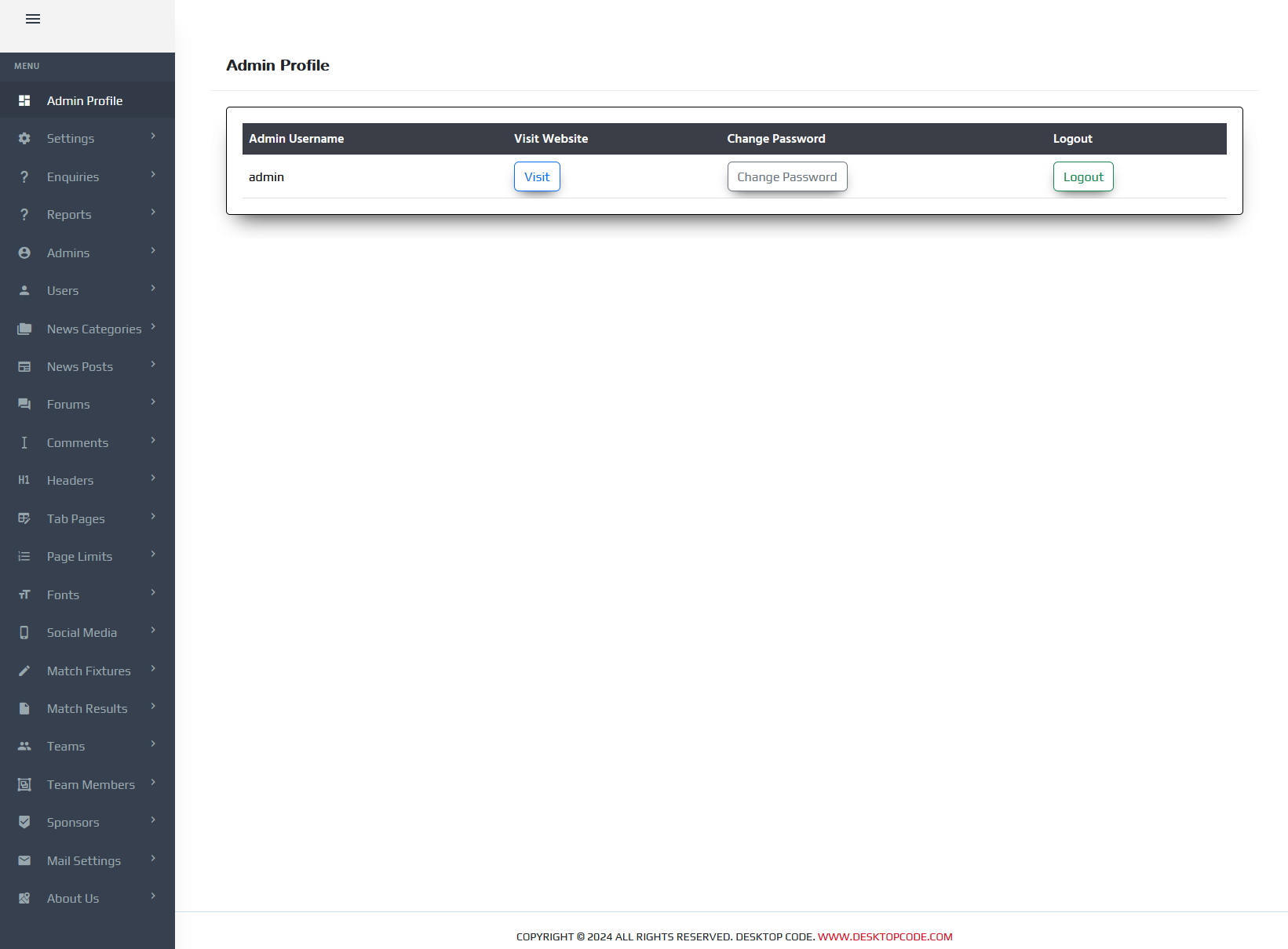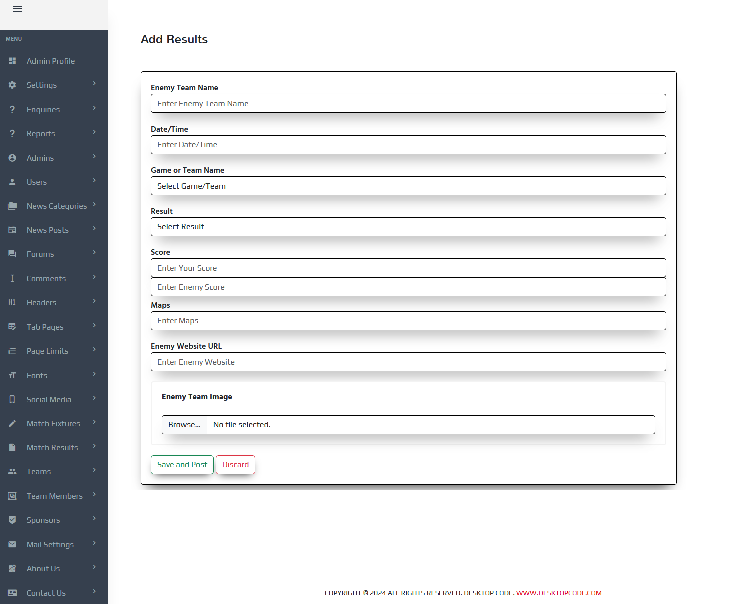 Gaming Template Admin Panel is an Admin Panel for Clan Templates Found at Desktop Code.