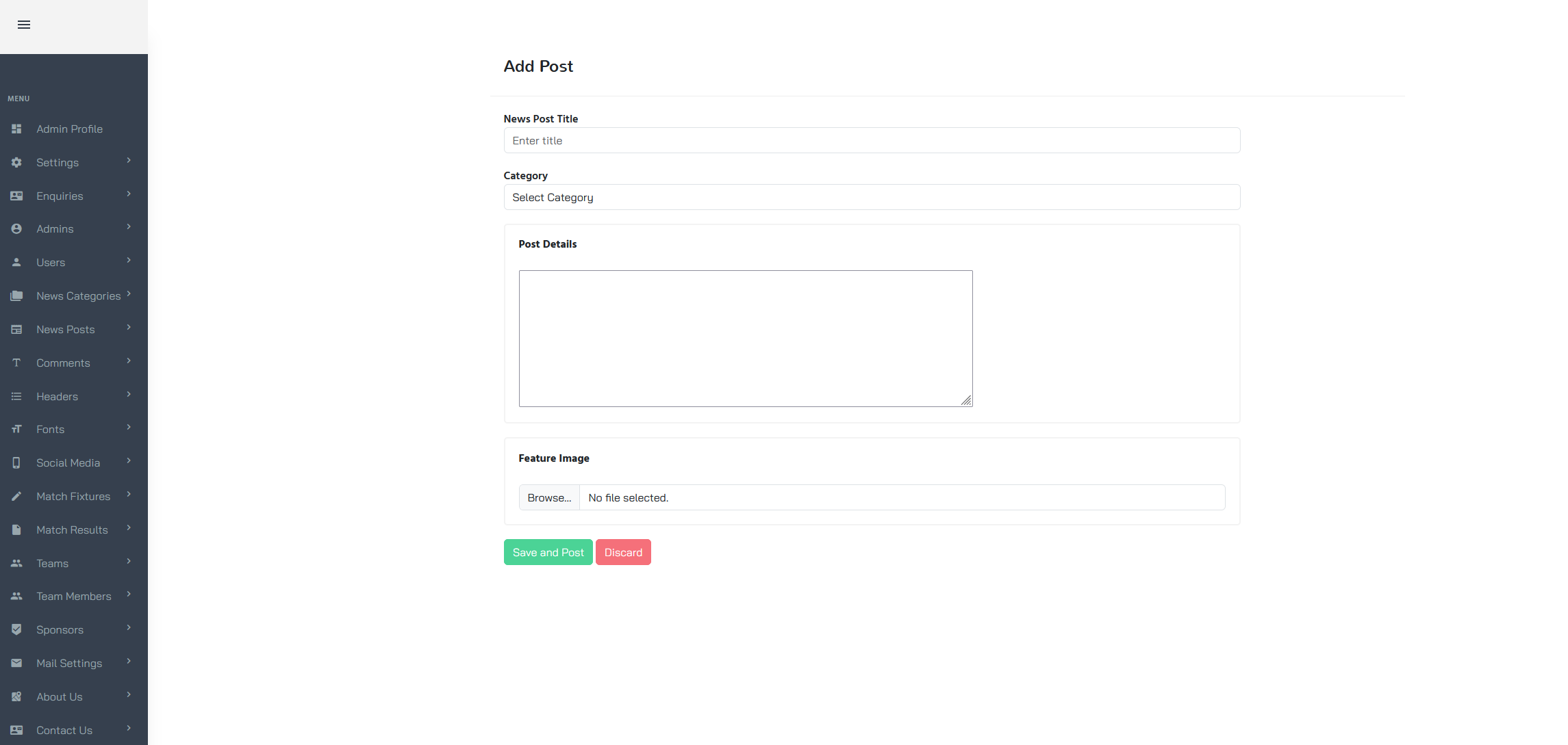 Layout Tabs: Switch around the Fixture, News, Members and Results tabs for each page.