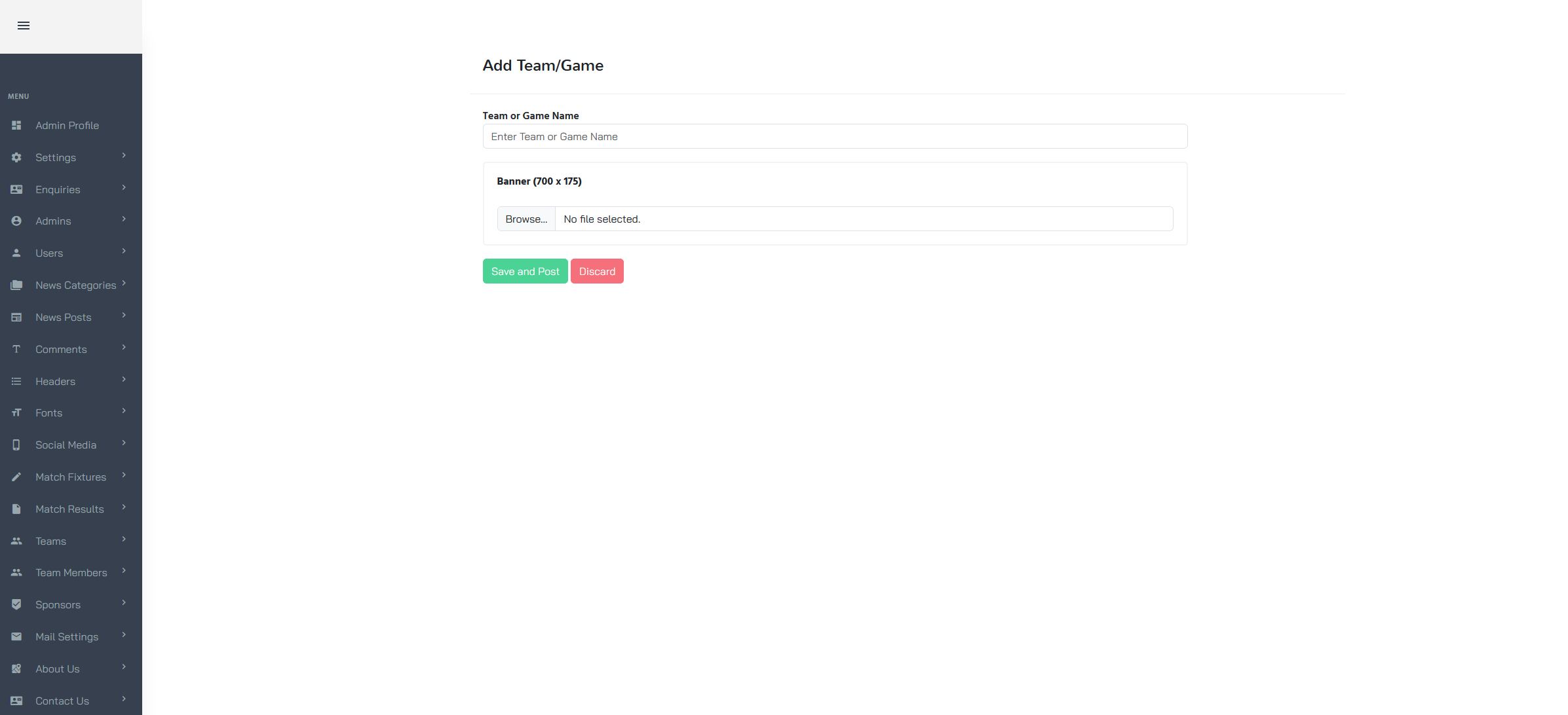 Teams: Add, Delete or Diactivate teams for whichever game you choose.