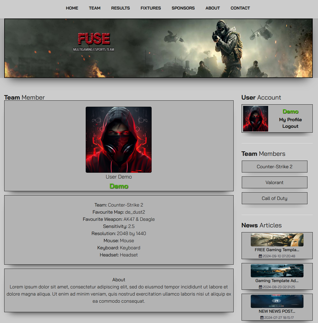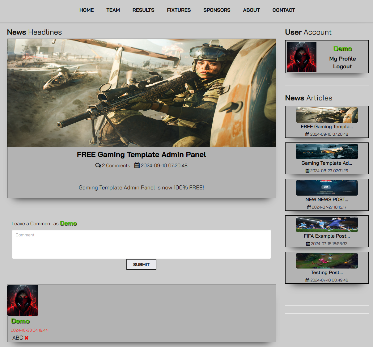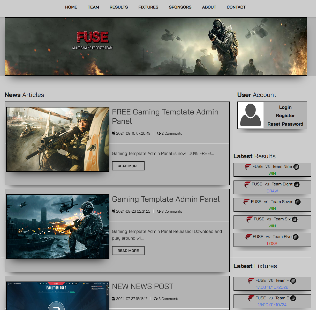 Gaming Template Admin Panel is an Admin Panel for Clan Templates Found at Desktop Code.