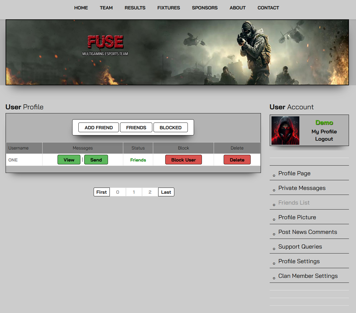 Friends List: Chat/Add/Block/Delete other users from your friends list.