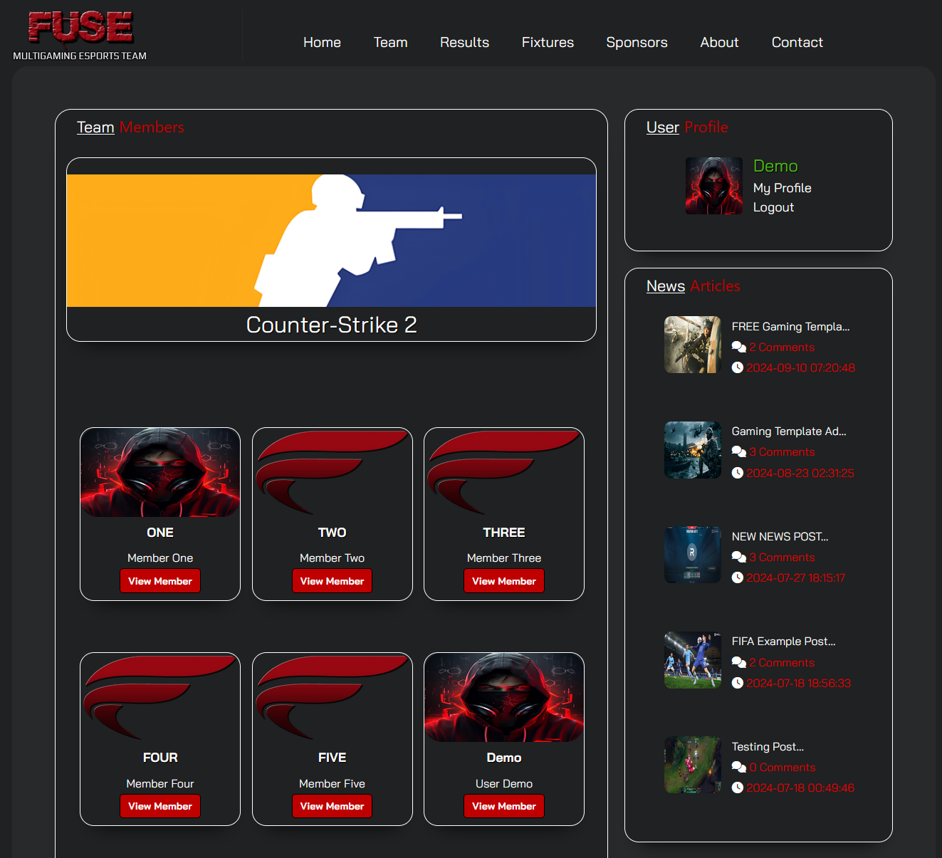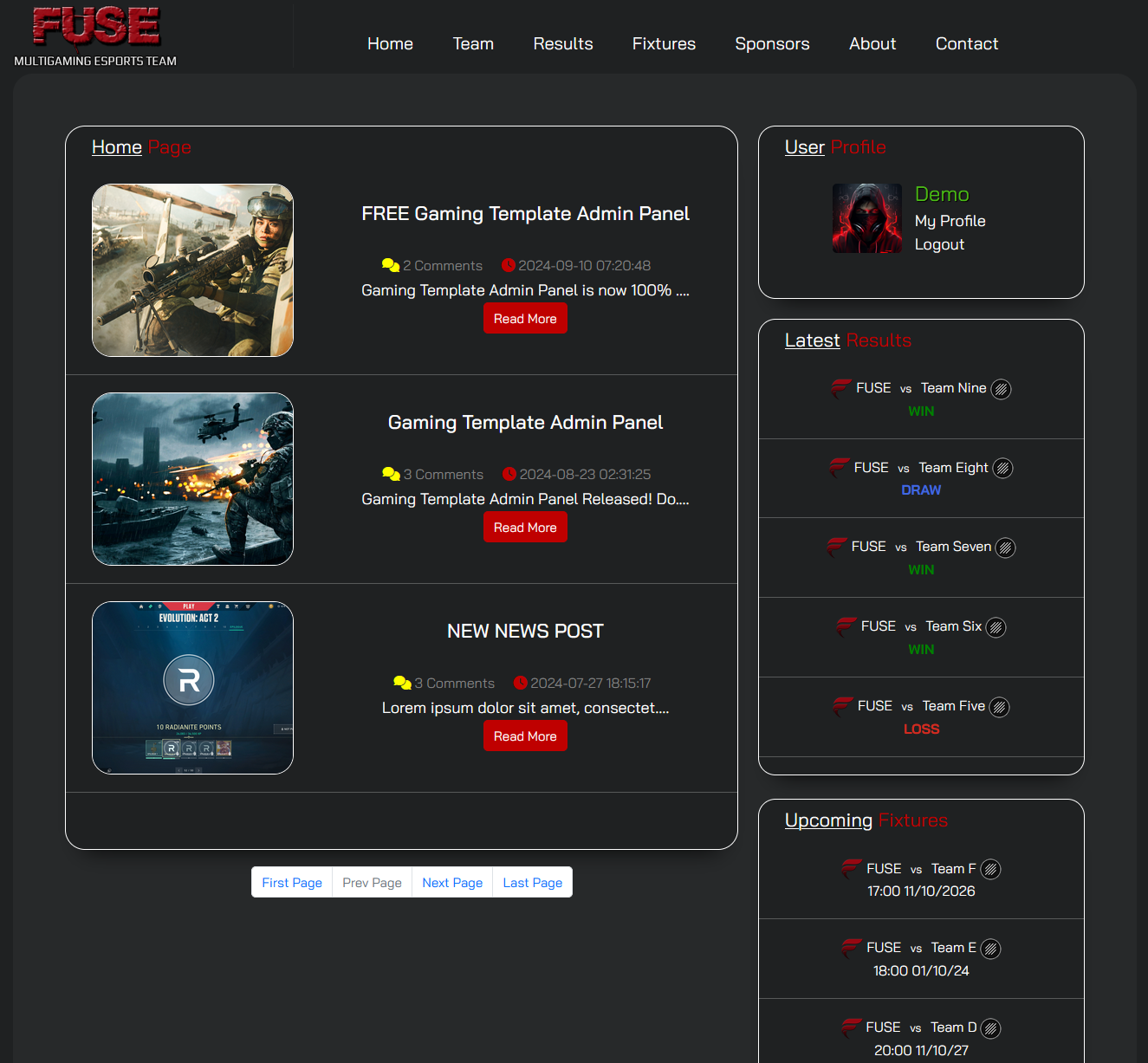 *These templates require Gaming Template Admin Panel