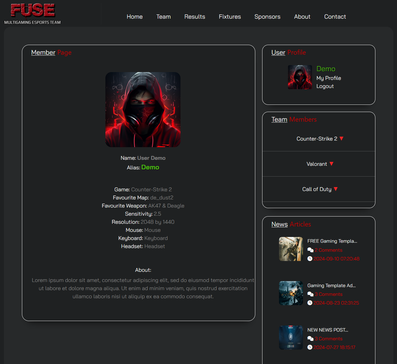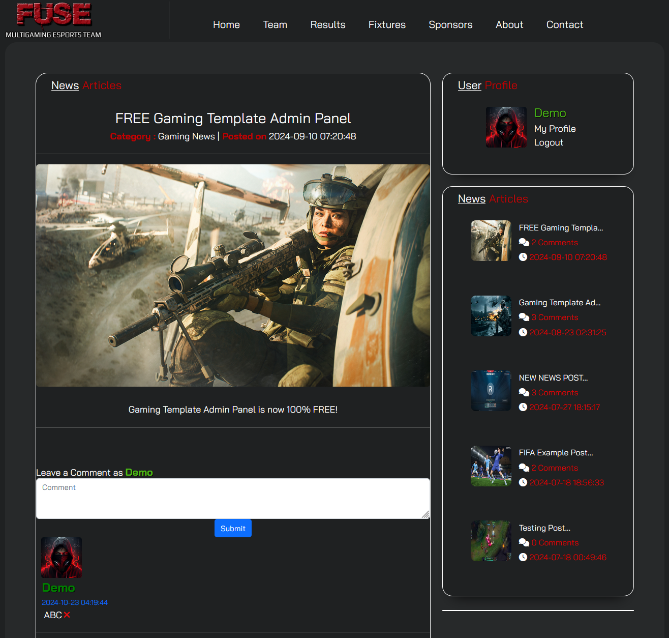 Gaming Template Admin Panel is an Admin Panel for Clan Templates Found at Desktop Code.