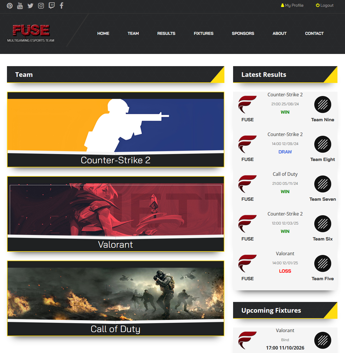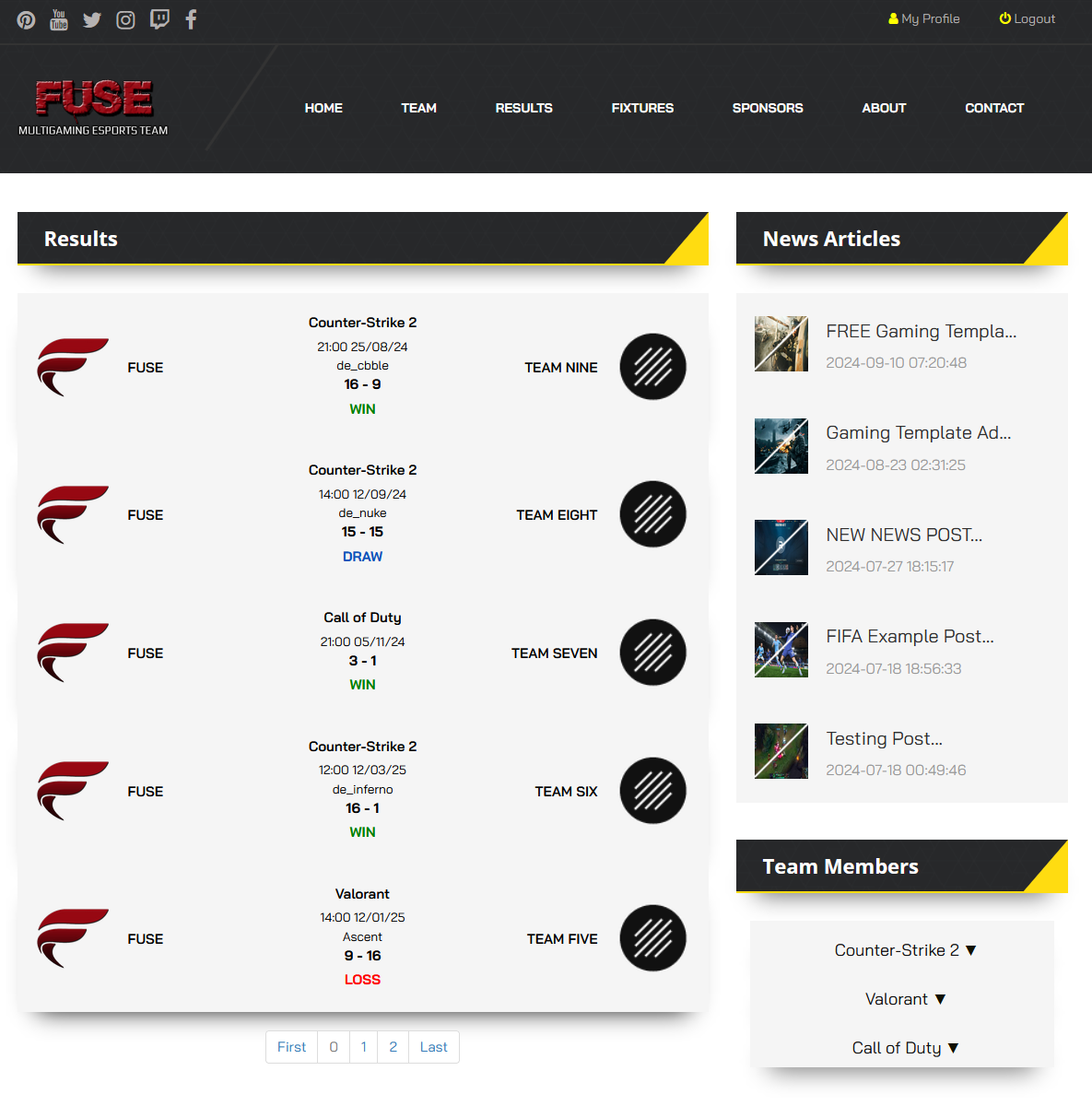Home Page: The Home pages shows recent results and fixtures, aswell as recently posted news.