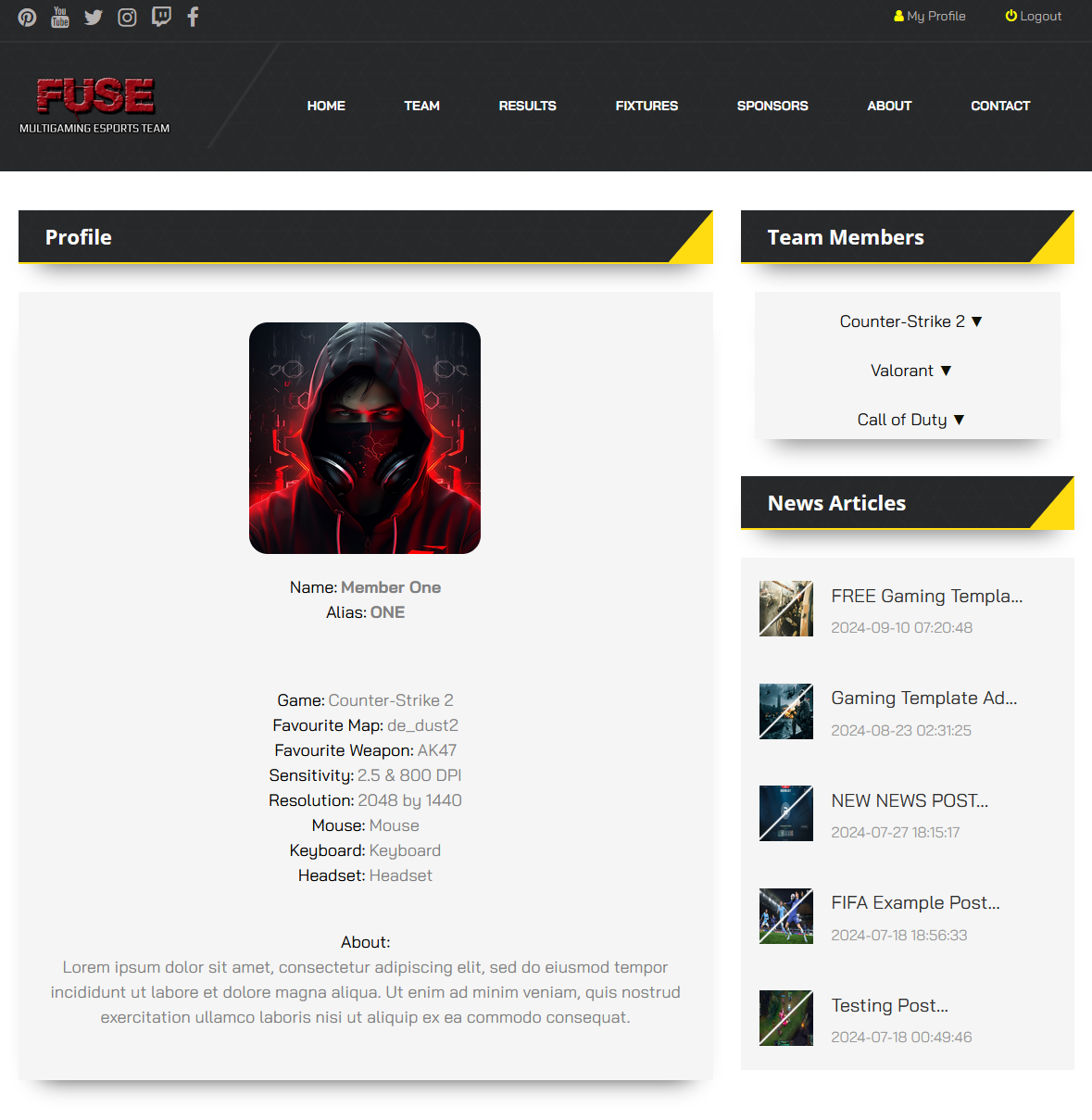 Gaming Template Admin Panel is an Admin Panel for Clan Templates Found at Desktop Code.
