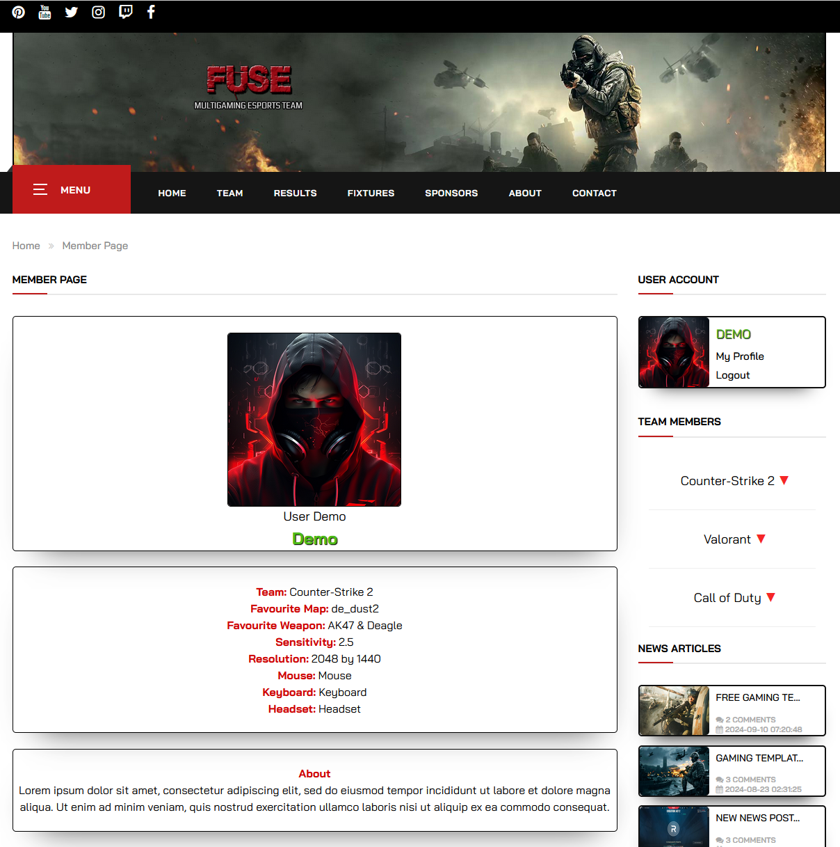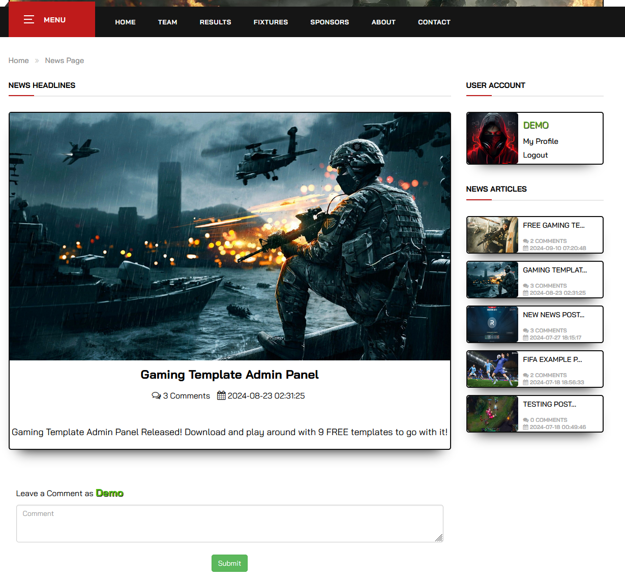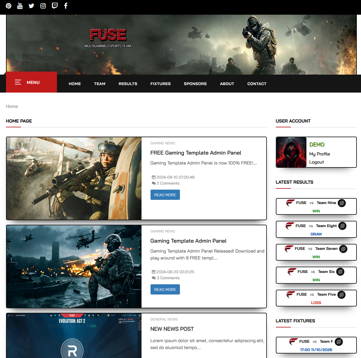 Gaming Template Admin Panel is an Admin Panel for Clan Templates Found at Desktop Code.