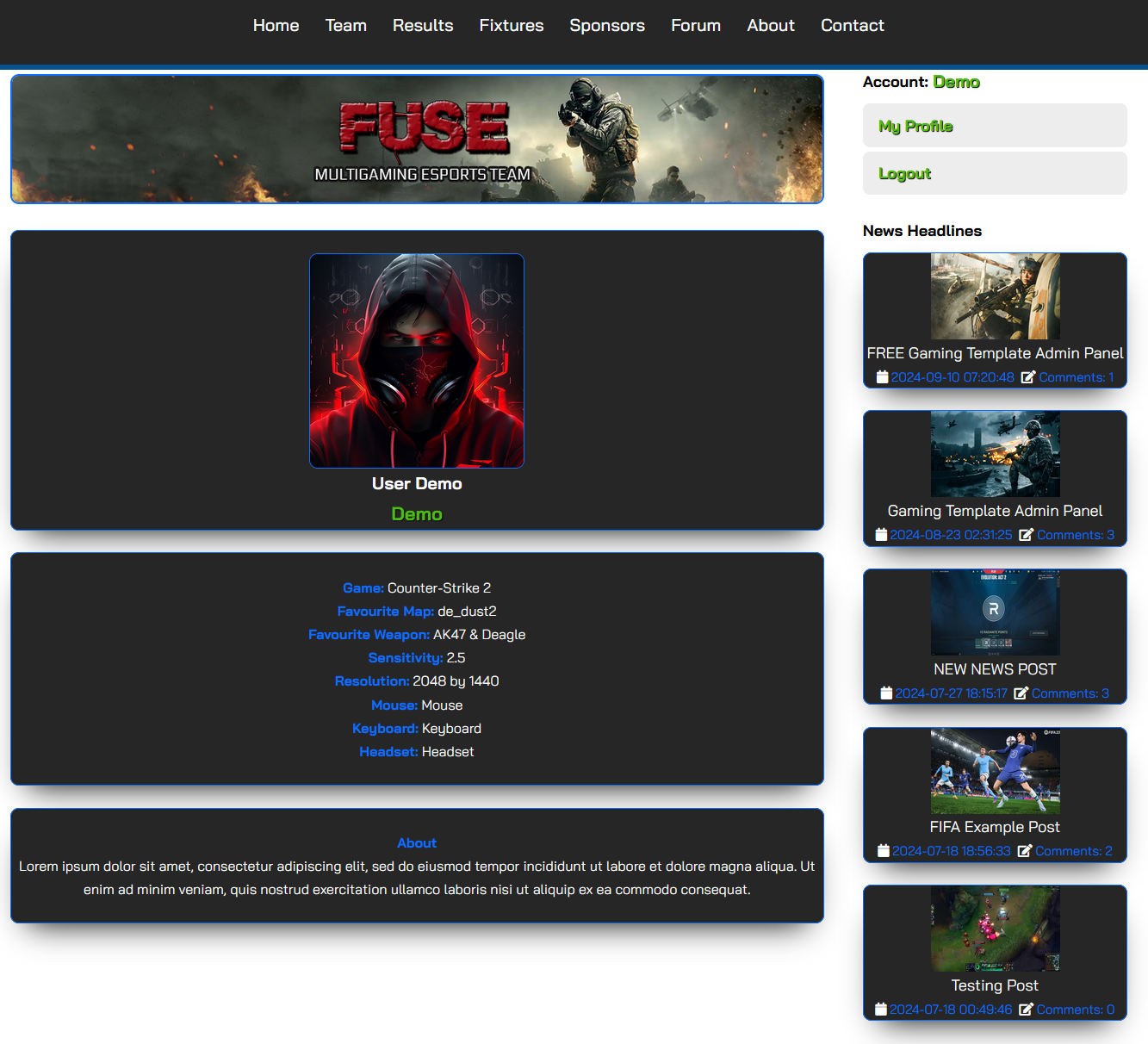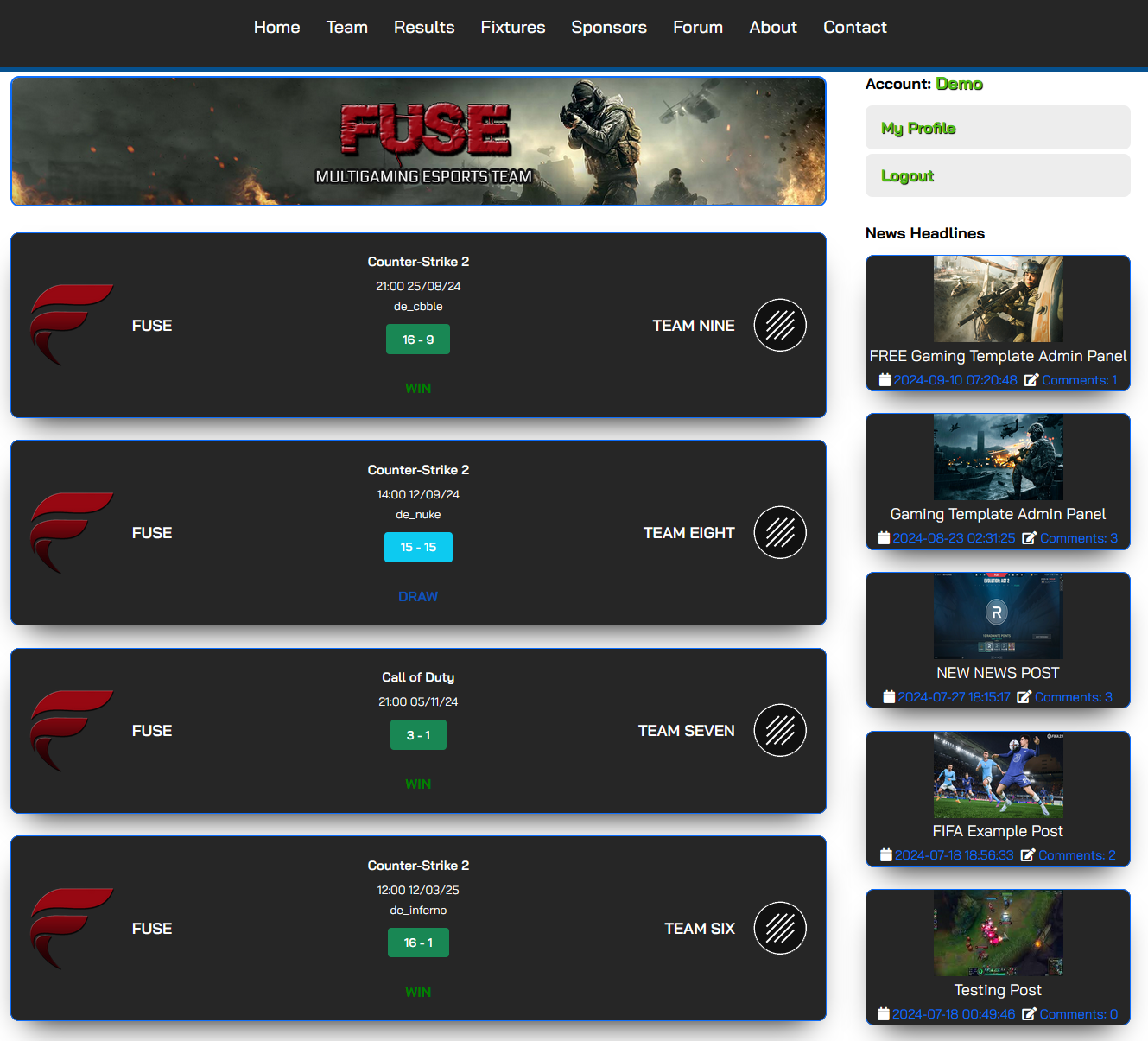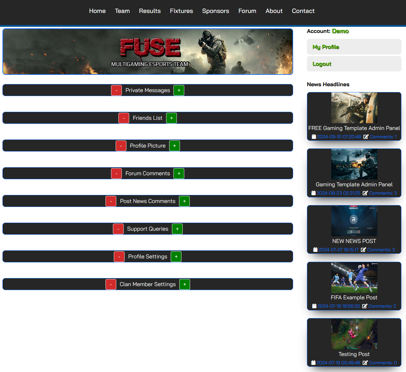 Gaming Template Admin Panel is an Admin Panel for Clan Templates Found at Desktop Code.