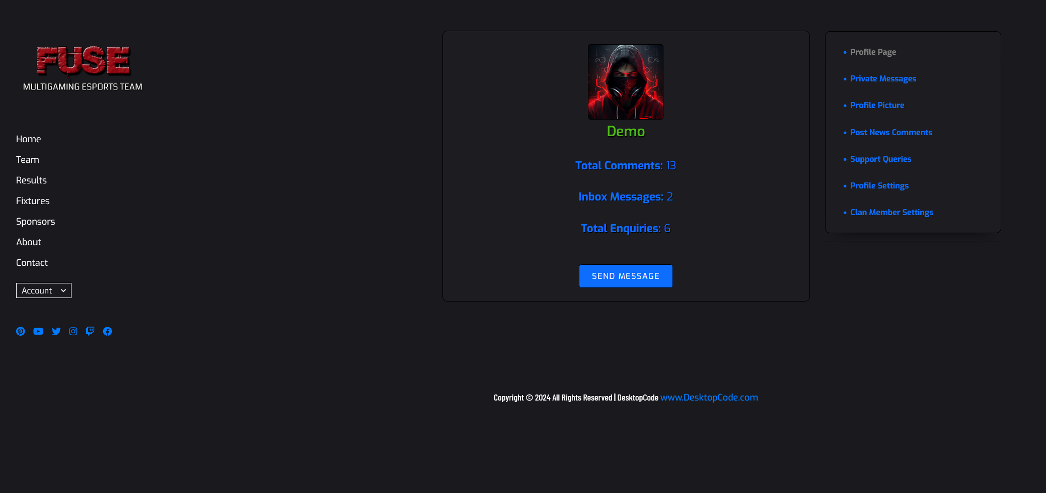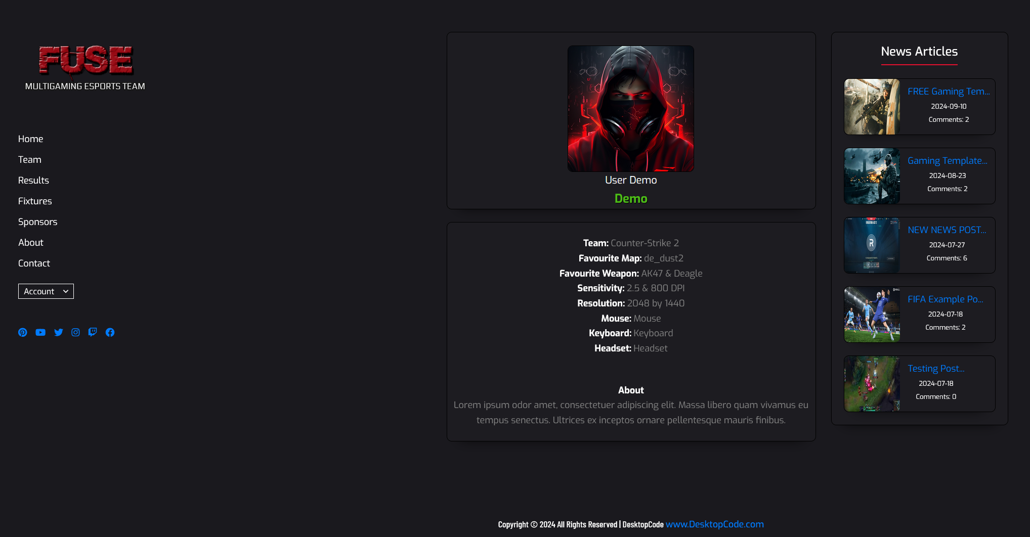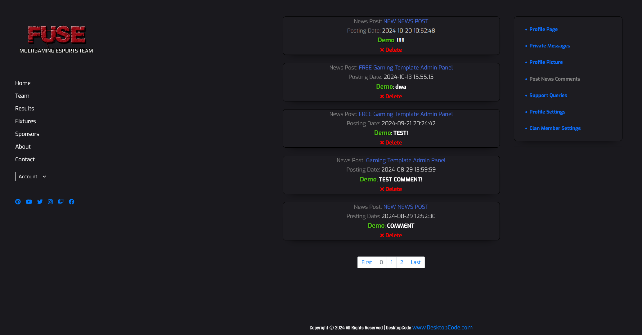 Gaming Template Admin Panel is an Admin Panel for Clan Templates Found at Desktop Code.